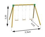El gronxador triple de fusta MASGAMES ETNA inclou els ancoratges per subjectar el parc infantil en un sòl de terra.