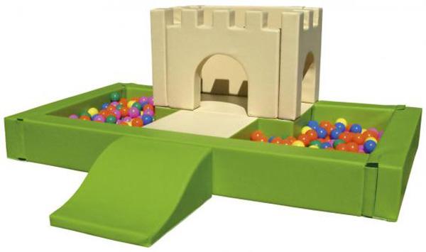 Piscines de boles amb castell inclòs. Una piscina de boles amb una rampa per a una màxima seguretat i fàcil accés als nens que gategen. La piscina de boles tova amb parets encoixinades i unides amb un velcro fort, unes piscines segures, netes i resistents per omplir de boles (no incloses en el preu).
