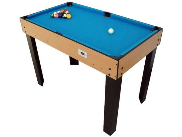 La taula de billar inclou boles de billar americà i té butxaques de caiguda amagades als forats per a fer el joc més realista.