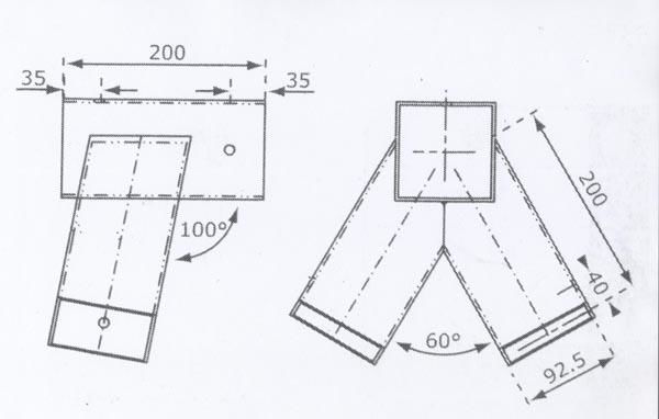- Angle oblic entre la barra horitzontal i les verticals de 90º