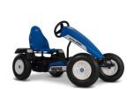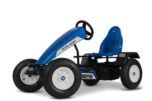 Kart de pedals BERG EXTRA SPORT BFR. Un cotxe de pedals molt popular tant pels particulars com per a les empreses d'esdeveniments. Els karts de pedals BERG vénen amb rodes de pneumàtic per desplaçar-se per camins de terra o asfalt sense dificultat. El xassís del kart de pedals és de color negre, i té el seient, el cobreix cadenes i el embellidor de l'eix del volant de color blau. El quadricicle de pedals és apropiat per a nens i adults.