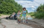 - El kart de pedals té rodes de pneumàtic amb aire que li donen adherència a terra i confort al conductor.