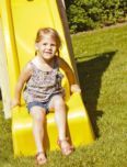 A la rampa se li pot connectar a l'estiu una mànega perquè baixi l'aigua per la rampa . És per tant una combinació que ofereix moltes possibilitats de diversió per als nens .