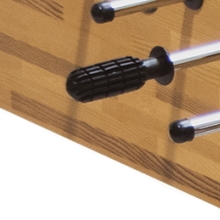 Barres amb mànecs antilliscants. Els mànecs de les barres del futbolí són de plàstic amb dibuix antilliscant. Les barres del futbolí són de metall de 13 mm de diàmetre.