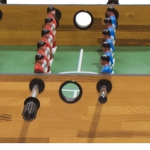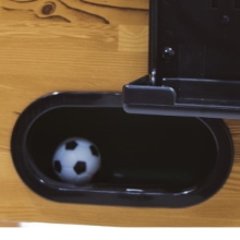 Retorn de boles. A sota de cada porteria hi ha un caixa on van a parar les boles del futbolí. El futbolí inclou 2 boles de 30 mm de diàmetre amb el dibuix d'una pilota de futbol de veritat.