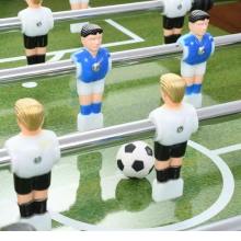 Jugadors de plàstic amb les cames juntes. Els jugadors són de plàstic ABS i tenen les cames juntes, que és com es juga al futbolí internacionalment. La alineació dels jugadors és de 1-2-5-3.