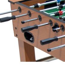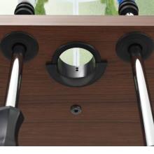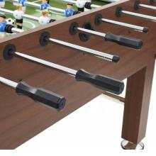 Reforç a les potes del futbolí. Les potes del futbolí tenen una barra cromada que aporta més resistència a l’estructura. Un futbolí familiar ha de ser suficientment fort per resistir a les partides més emocionants.