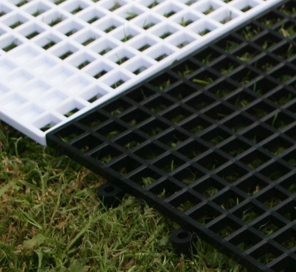 Tauler fabricat de forma que no malmet la gespa i resisteix qualsevol climatologia. Les 64 peces que formen el tauler gegant d'escacs es munten en 20 minuts i estan dissenyades perquè els jugadors puguin caminar sobre d'elles. El tauler deixa passar la llum, l'aigua i l'aire per tal que la gespa de sota no es malmeti.