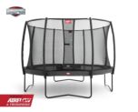Llit elàstic rodó BERG Champion amb xarxa de seguretat Deluxe, un llit elàstic de la millor qualitat amb les darreres innovacions. El sistema de molles Twinspring de doble molla en forma de "v" que augmenta l'àrea de salt perfecte i aporta millor comfort en el salt. La lona elàstica té uns porus més oberts que deixen fluir l'aire amb més llibertat, és l'anomenada tela AIRFLOW que juntament amb les molles twingsping fan el millor salt. L'estructura del trampolí està ben protegida per l'exterior i té un elegant color negre que li dóna una protecció extra. La xarxa de seguretat Deluxe ben integrada en el llit elàstic manté sempre la xarxa ferma. El llit elàstic BERG Champion té una vora protector molt ample i gruixut disponible en els colors verd o gris.