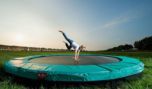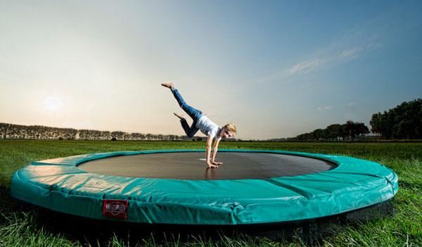 Llit elàstic pensat per ser enterrat al terra fent un forat i que quedi ben integrat al jardí. Com queda a una alçada de 20 cm i si l'utilitzen per fer esport per part de persones adultes, es pot comprar sense xarxa.