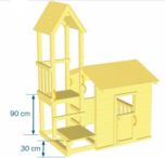 Caseta de fusta. La caseta de fusta està a nivell del terra, fet que fa del parc Lookout S un parc ideal per als més petits. No hauran de pujar escales, i la caseta serà un espai de joc gran i a cobert amb dues finestres i una gran obertura des d'on podran saludar a la familia i a través de la qual els adults podran tenir un major control dels més petits mentre juguen.