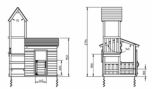 Torre de fusta. El parc té una petita torre de fusta quadrada amb una plataforma de 90 cm d'alçada, des de la que surt la rampa de tobogan de 120 cm de llarg. L'accés a la torre és per una escala situada al costat oposat a la rampa de tobogan, amb dos graons de 30 cm cada un. El segon graó es una escala vertical, mentre que el primer és una petita plataforma. La torre té una estètica divertida amb un sostre doble amb forma de punxa.