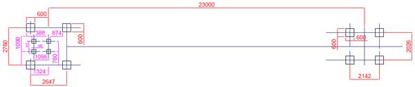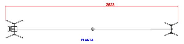 Estructura, tirolina: 270 cm (ample), 2523 cm (llarg), 421 cm (alt).